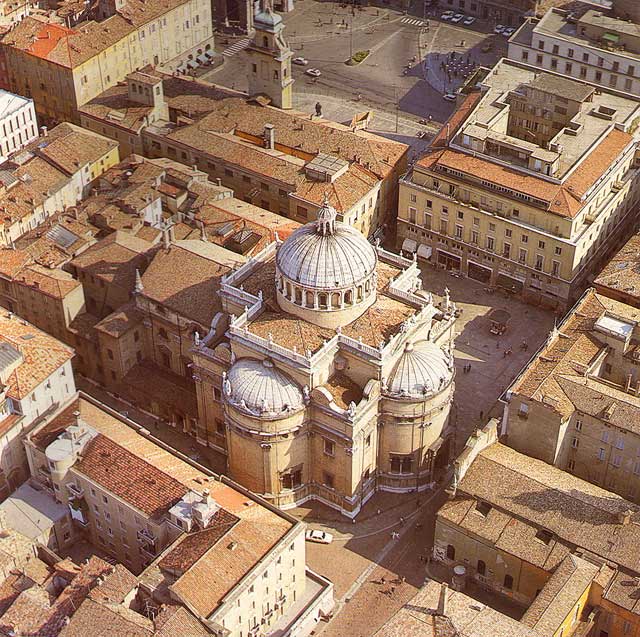 The city walls were enlarged in 1169 to incorporate the new suburbs, their monasteries of San Giovanni (980), San Paolo (985) and San Sepolcro and the Platea Ecclesia Maioris, actually Piazza Duomo.